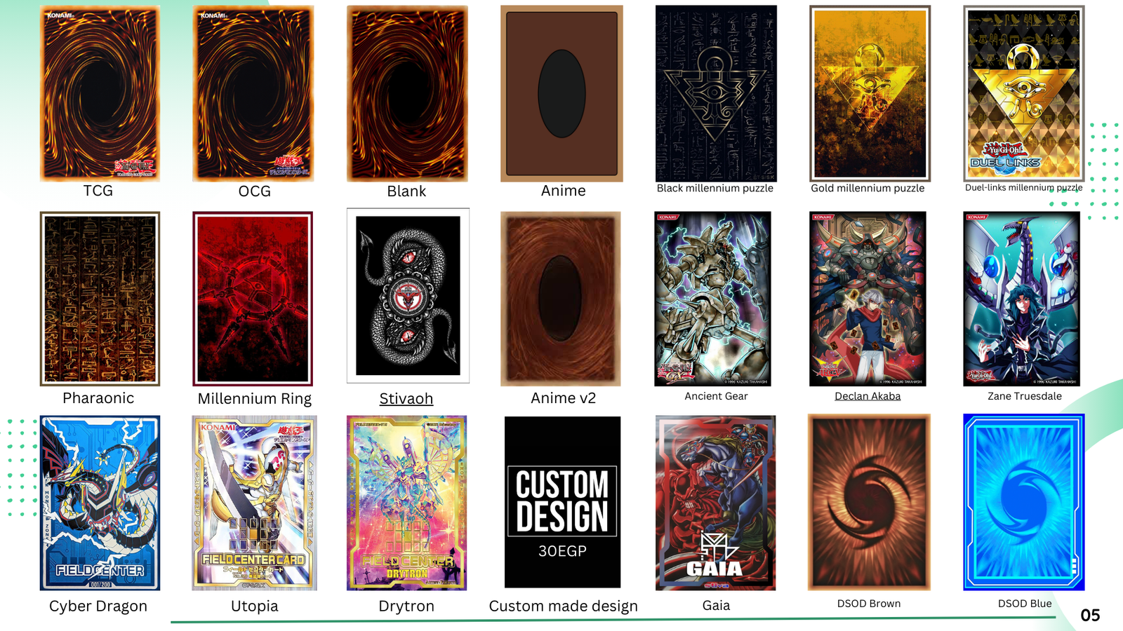 One of the most exciting features of our custom card service is the option to design your own back card. You can upload your own design for free or choose from our pre-made templates. Want something special? We can design a fully customized back card just for you for only 50 EGP. Whether it’s your favorite character, logo, or personal artwork, the possibilities are endless!